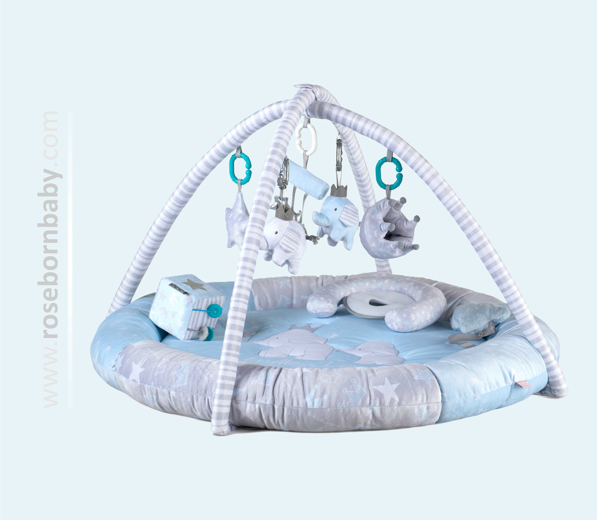 این محصول یک باشگاه ورزشی چند حسی برای رشد کودک شما می باشد که با داشتن دو عروسک آویز، دو عروسک جغجغه دار مختص همان طرح، یک مکعب صدا دار و استوانه موزیکال کنجکاوی کودک شما را کاملا برمی انگیزد