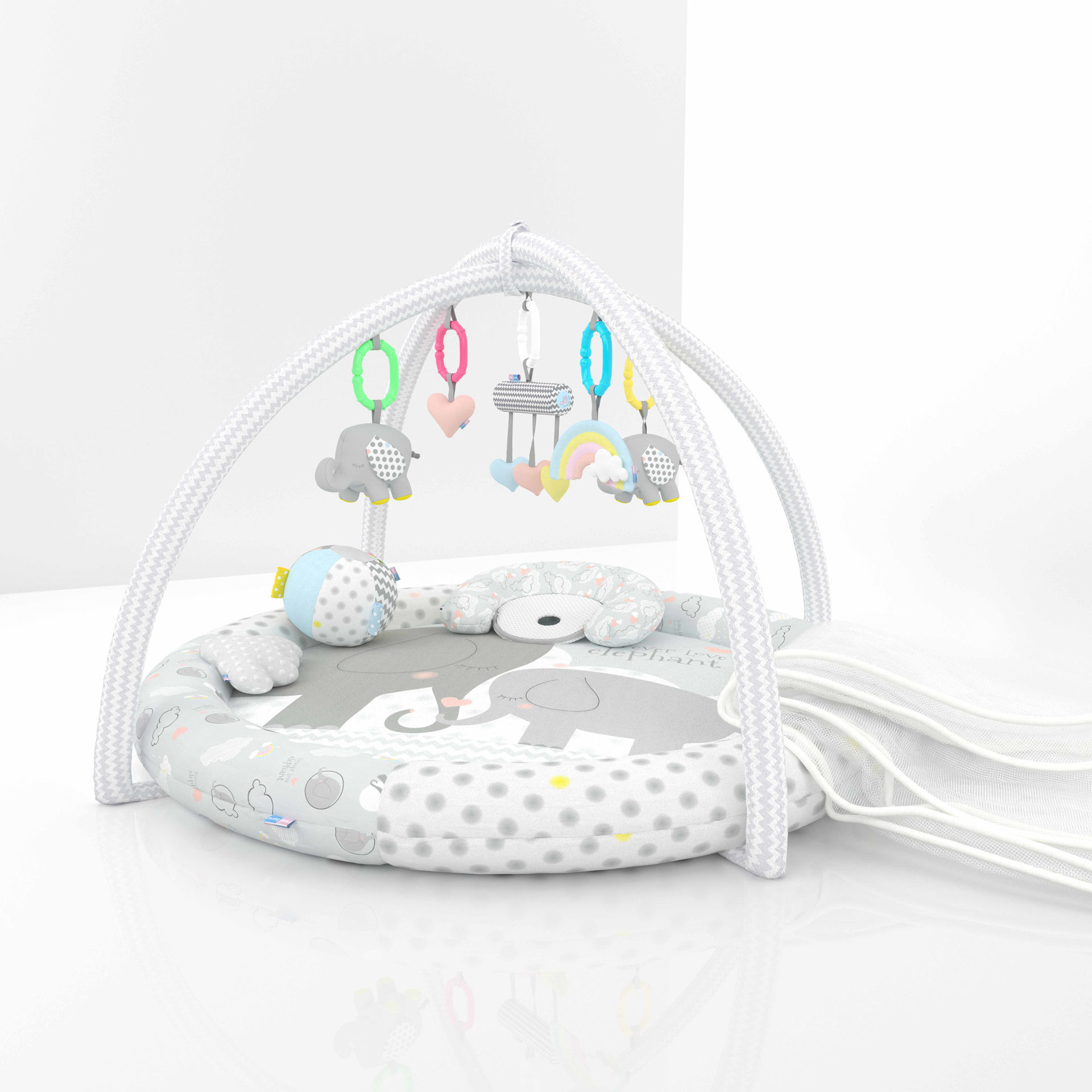 این محصول یک باشگاه ورزشی چند حسی برای رشد کودک شما می باشد که با داشتن دو عروسک آویز، دو عروسک جغجغه دار مختص همان طرح، یک مکعب صدا دار و استوانه موزیکال کنجکاوی کودک شما را کاملا برمی انگیزد