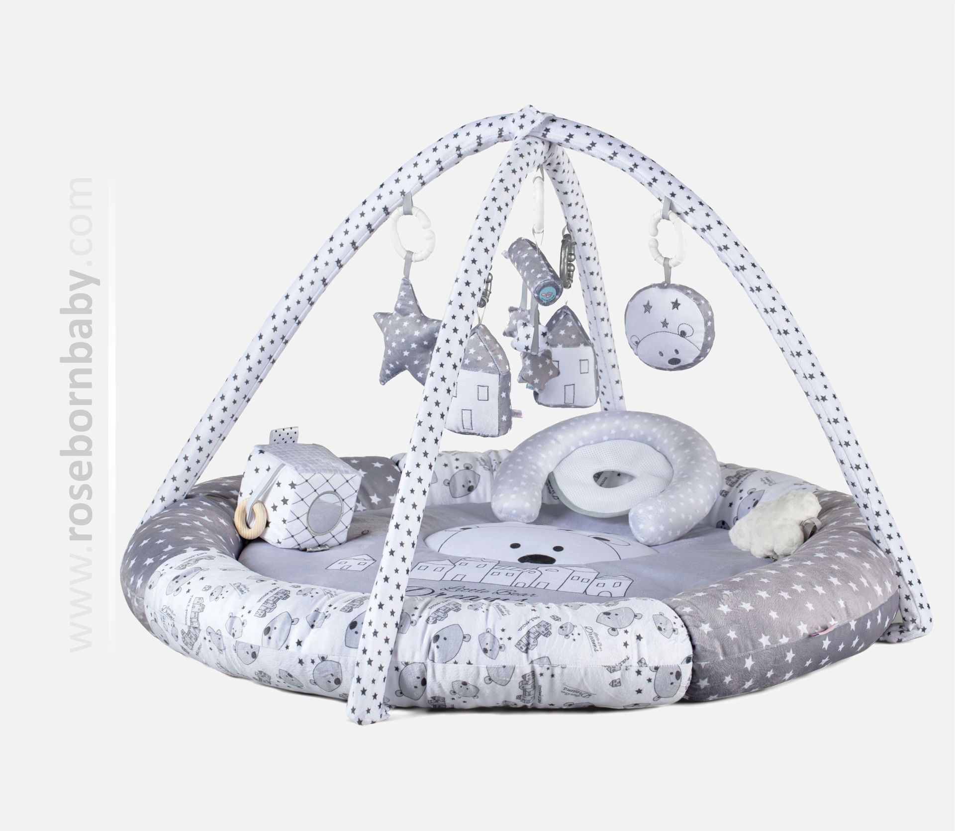 این محصول یک باشگاه ورزشی چند حسی برای رشد کودک شما می باشد که با داشتن دو عروسک آویز، دو عروسک جغجغه دار مختص همان طرح، یک مکعب صدا دار و استوانه موزیکال کنجکاوی کودک شما را کاملا برمی انگیزد